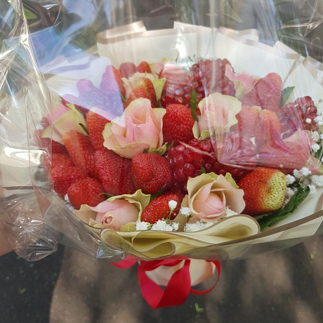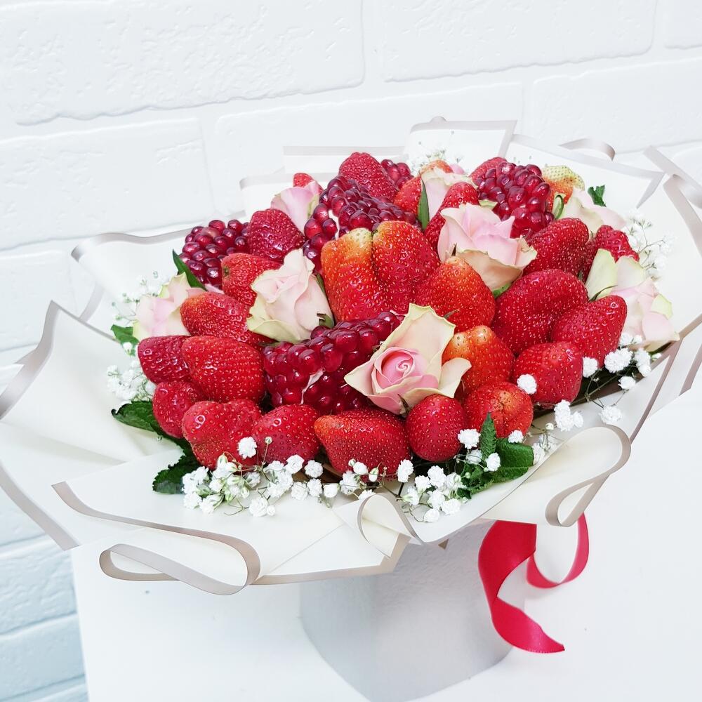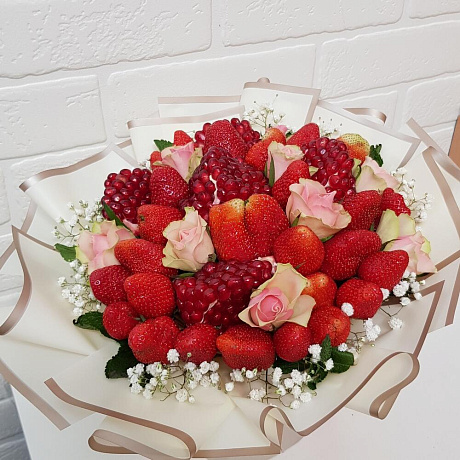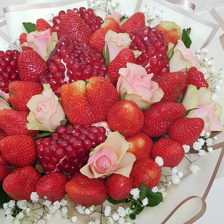 Закажите Букет цветов "Клубника, гранат, цветы" с доставкой в Москве и МО.
