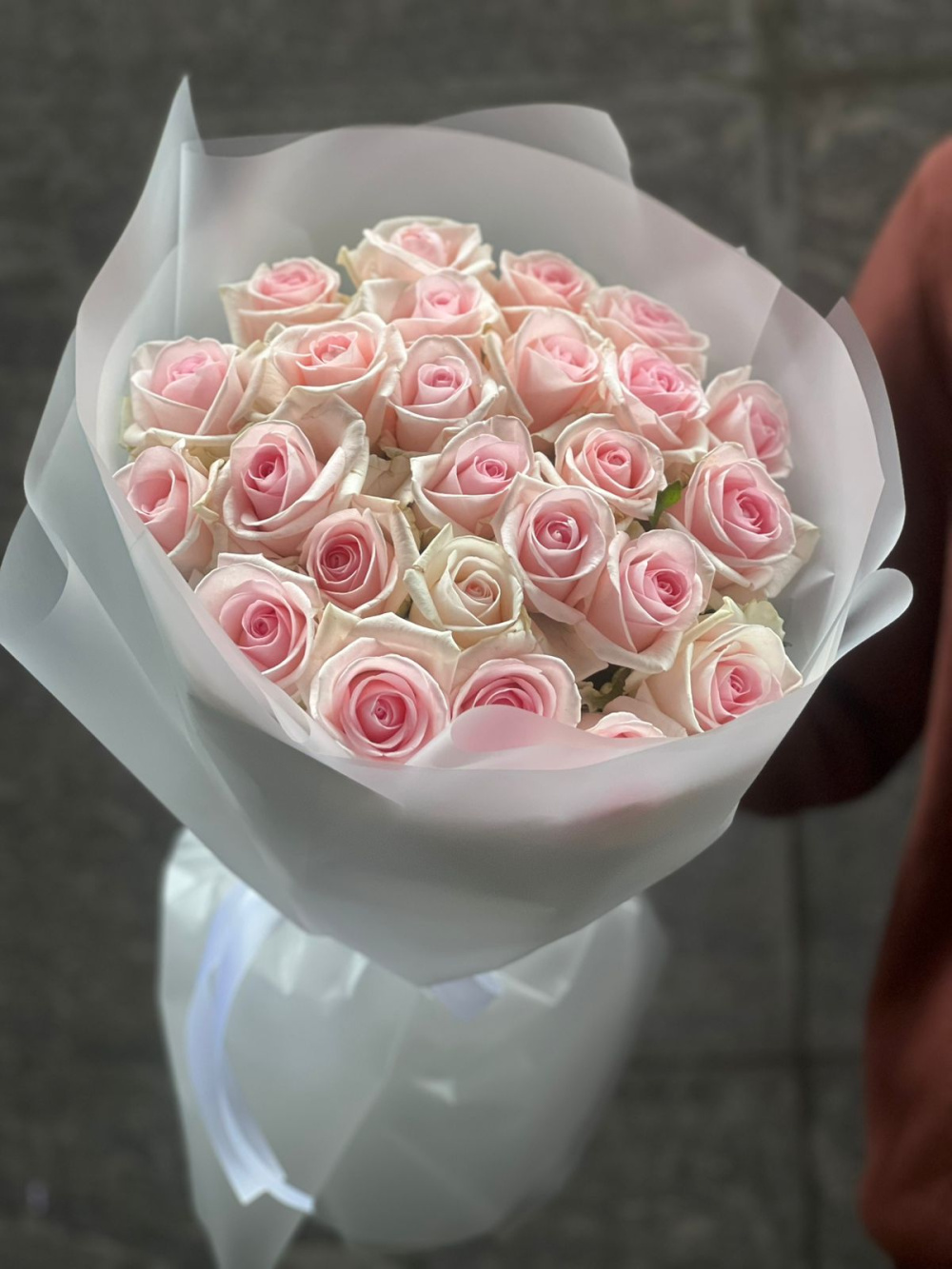 На фото - Букет цветов "Сказочная страна" №2. В составе данной композиции: Роза Кимберли - 25 шт..