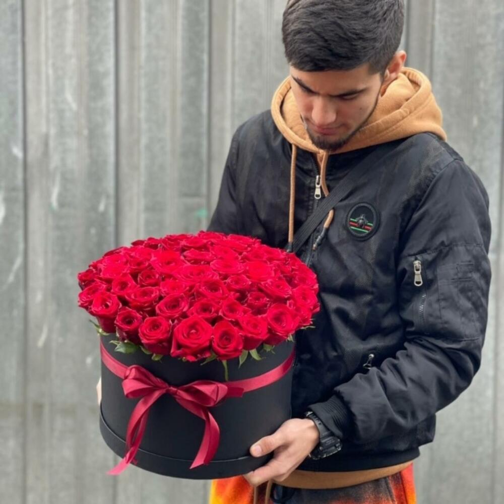 <p>На фото - Цветы в коробке №689. В составе данной композиции: розы эквадор (60 см) - 65 шт.; Коробка шляпная - 1 шт.; Лента атласная - 2 шт..</p> <p>На сайте "Доступная доставка цветов" Вы найдете большой выбор недорогих букетов, цветочных композиций для любого повода.</p> <p>У нас можно заказать Цветы в коробке №689 с доставкой по Москве.</p>