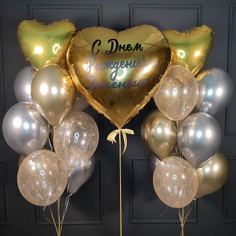 Закажите Композиция с большим золотым сердцем и фонтанами с сердцами с доставкой в Москве и МО.
