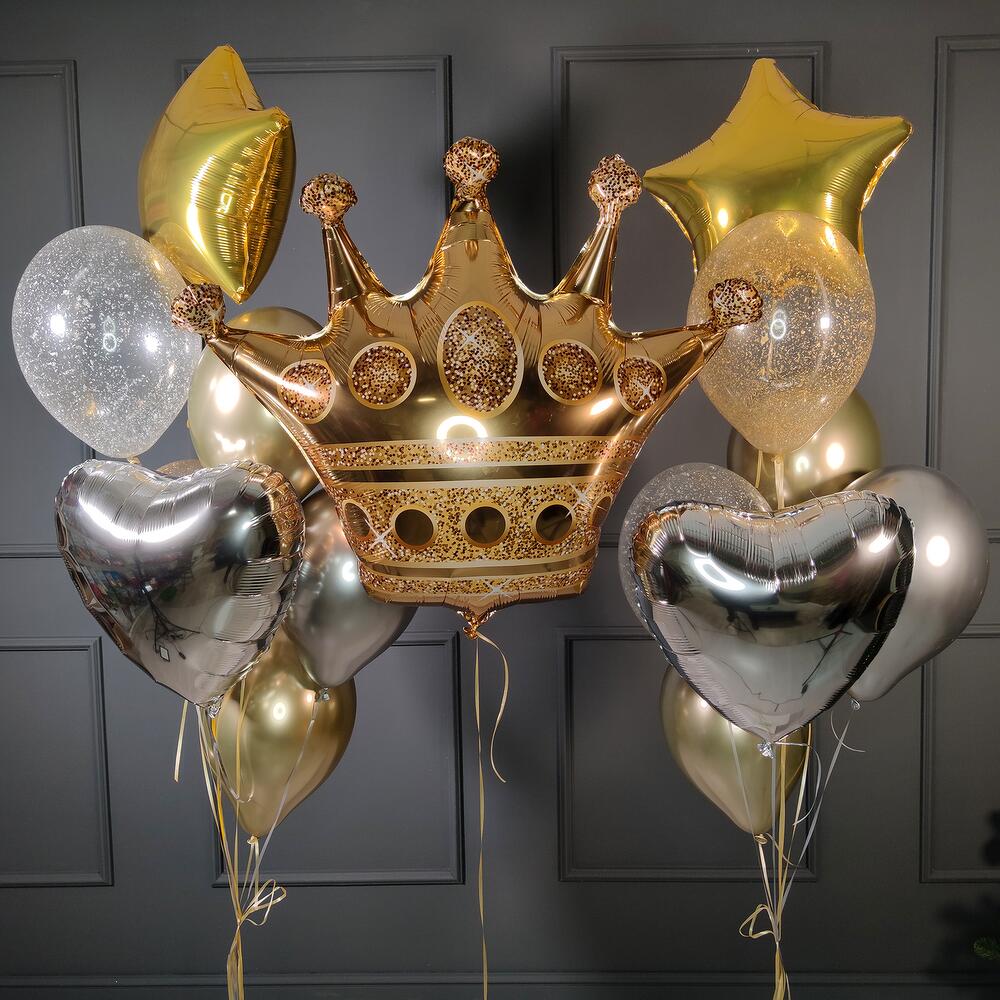Композиция с золотой короной из шаров