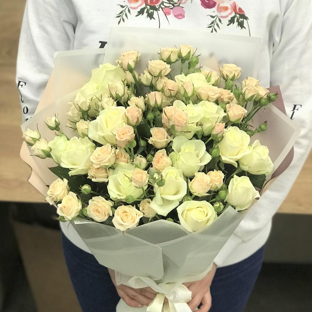 Кустовые розы. монобукет. N384 — отличный выбор для подарка! На сайте вы найдете красочные фотографии, которые помогут сделать выбор. Цена букета — 5800 руб.