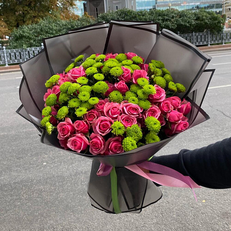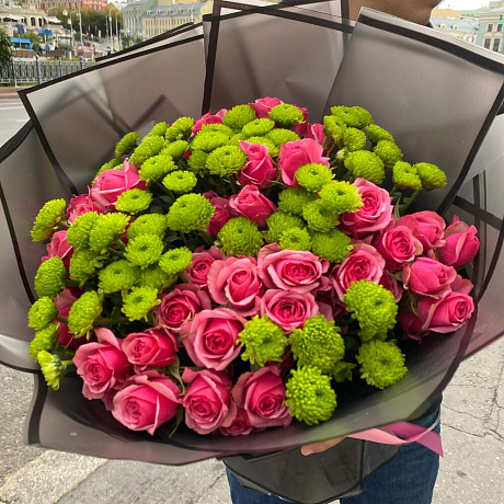 Кустовые Розы с сантини — отличный выбор для подарка! На сайте вы найдете красочные фотографии, которые помогут сделать выбор. Цена букета — 5900 руб.