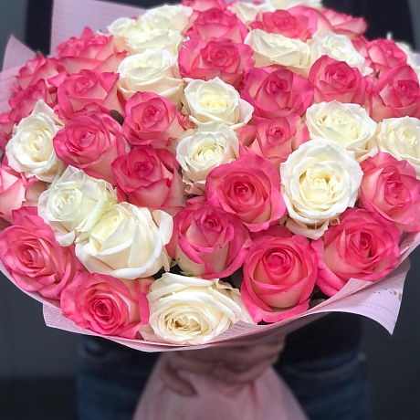 Микс из белых и розовых роз — отличный выбор для подарка! На сайте вы найдете красочные фотографии, которые помогут сделать выбор. Цена букета — 6600 руб.