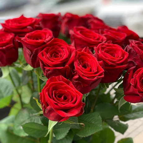 Моно букет из красных роз — отличный выбор для подарка! На сайте вы найдете красочные фотографии, которые помогут сделать выбор. Цена букета — 3700 руб.