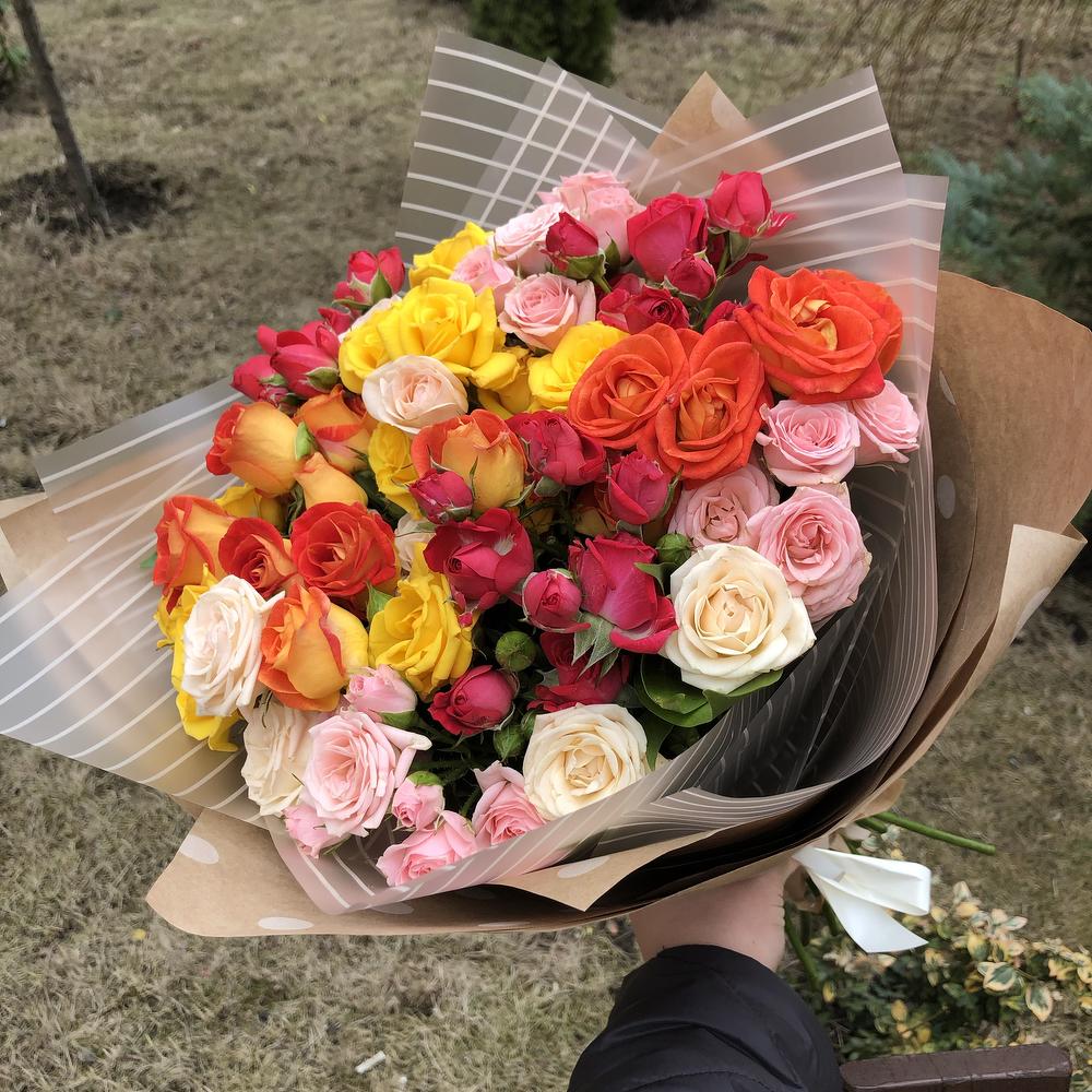 Закажите Монобукет 29 кустовых роз микс с доставкой в Москве и МО.