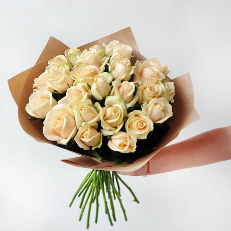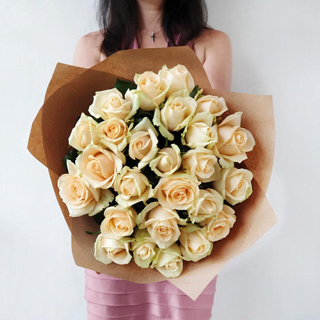 Закажите Нежный букет из персиковых роз в крафте "Королева" с доставкой в Москве и МО.