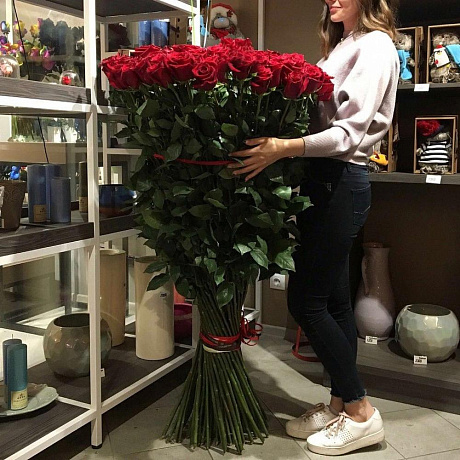 Огромные Розы 150см — отличный выбор для подарка! На сайте вы найдете красочные фотографии, которые помогут сделать выбор. Цена букета — 34000 руб.