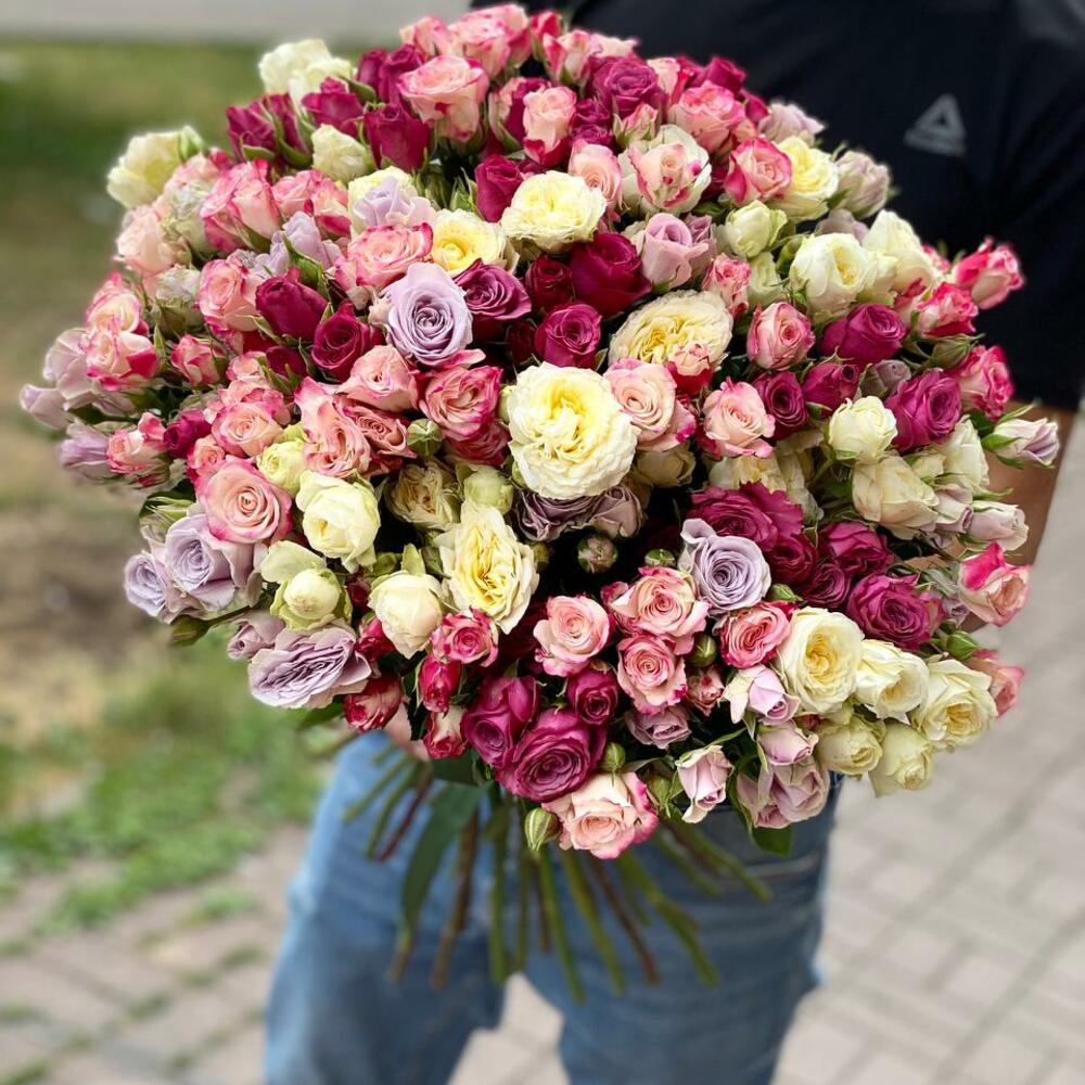 Состав: Роза кустовая - 51 шт.; Лента атласная - 1 шт.