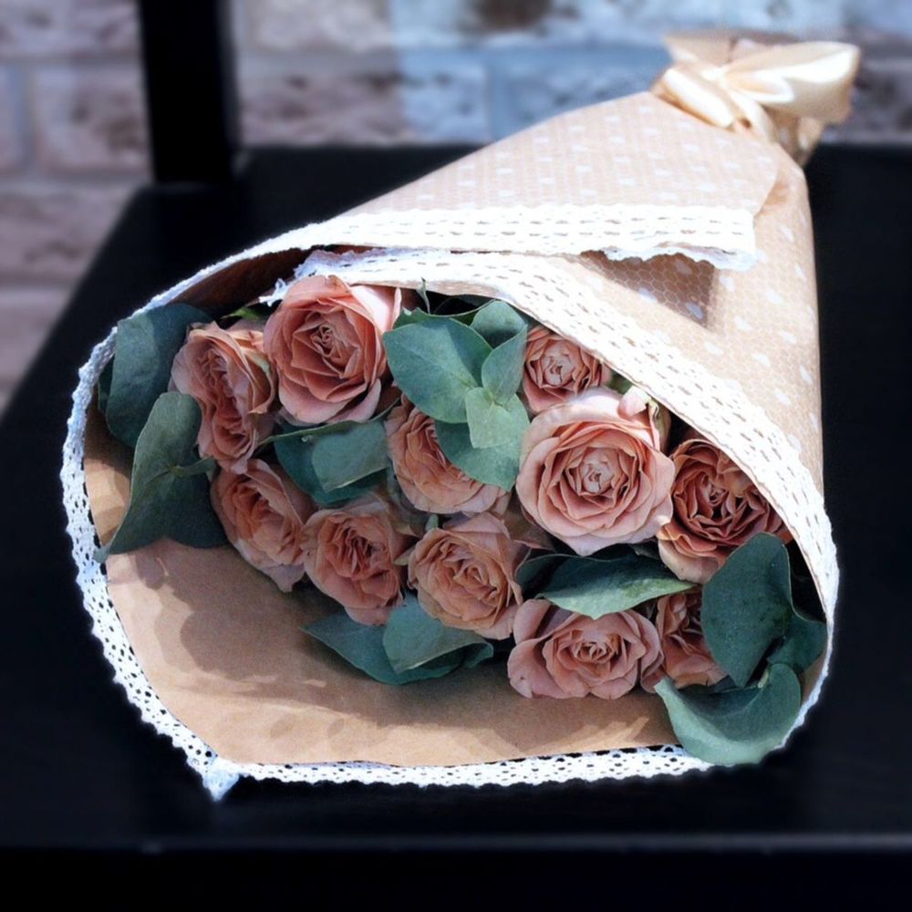 Роза Капучино с эвкалиптом — отличный выбор для подарка! На сайте вы найдете красочные фотографии, которые помогут сделать выбор. Цена букета — 5500 руб.