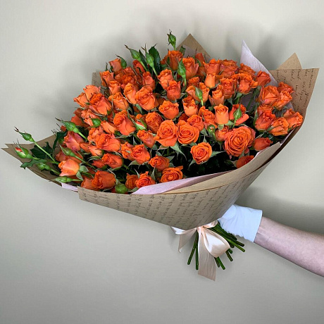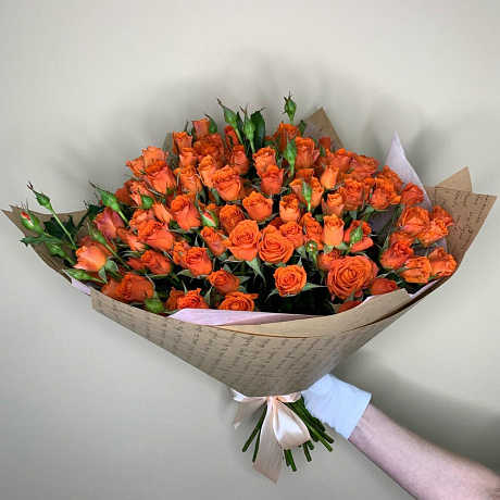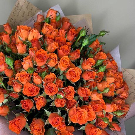 Роза кустовая оранжевая — отличный выбор для подарка! На сайте вы найдете красочные фотографии, которые помогут сделать выбор. Цена букета — 6500 руб.
