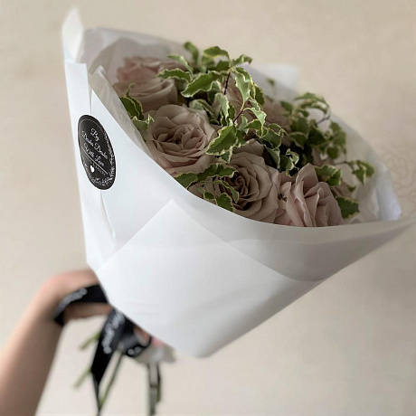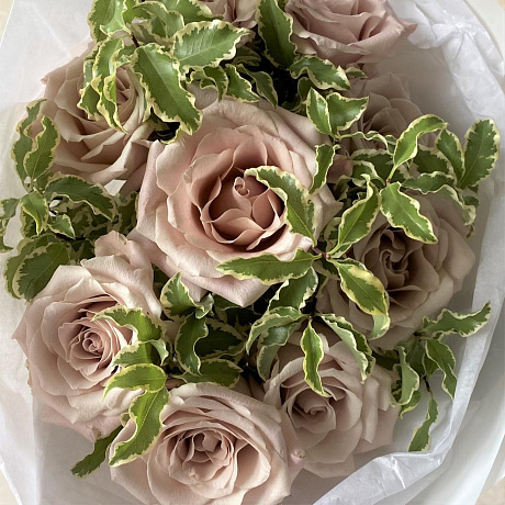Роза Мента 9 шт с зеленью/эвкалиптом — отличный выбор для подарка! На сайте вы найдете красочные фотографии, которые помогут сделать выбор. Цена букета — 3500 руб.