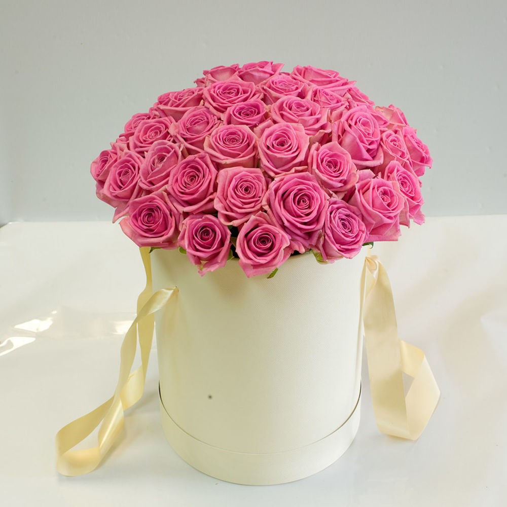 Закажите Розы Аква в шляпной коробке с доставкой в Москве и МО.