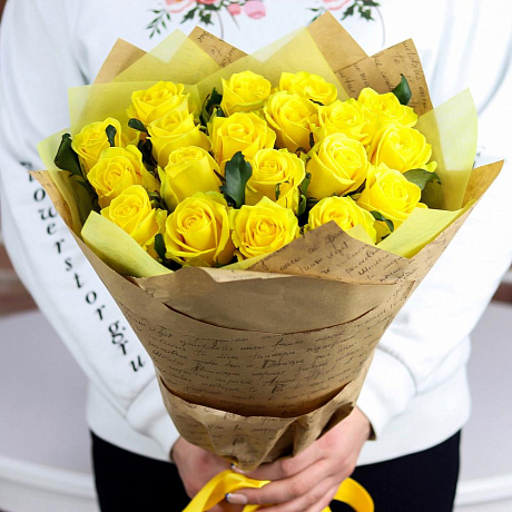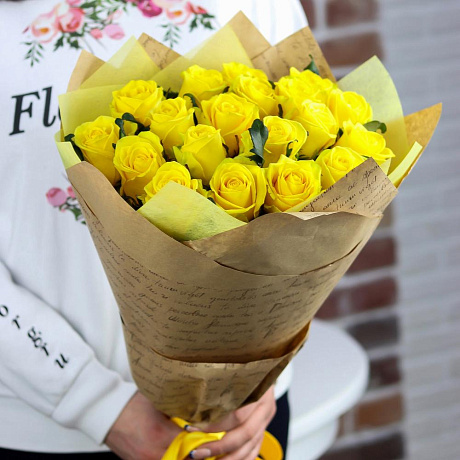 Розы. Букет из 19 желтых роз. N656