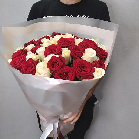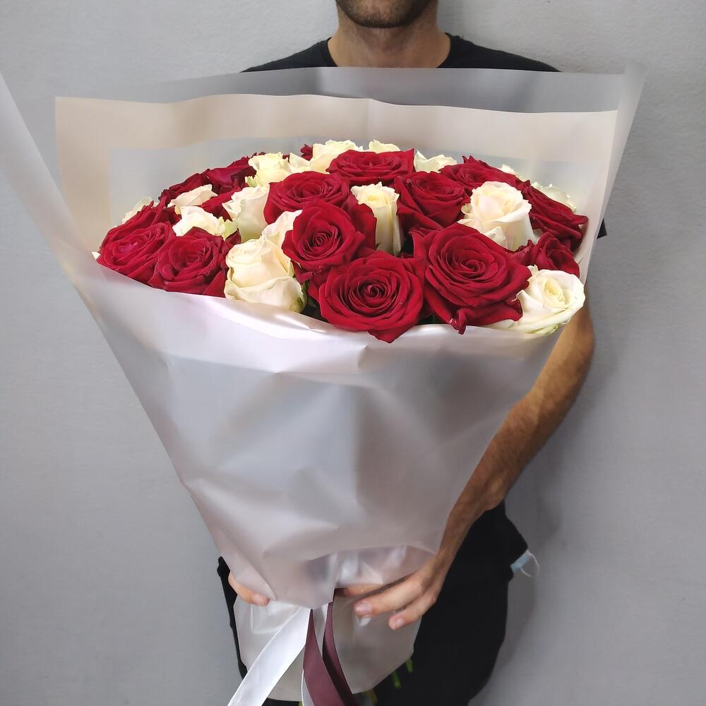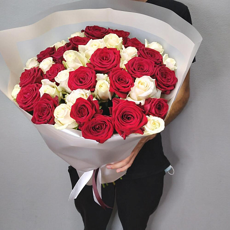 Розы Россия микс №160 — отличный выбор для подарка! На сайте вы найдете красочные фотографии, которые помогут сделать выбор. Цена букета — 4200 руб.