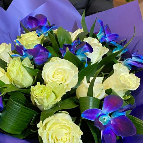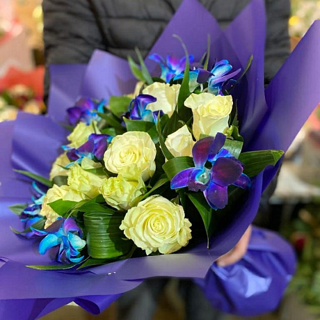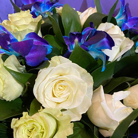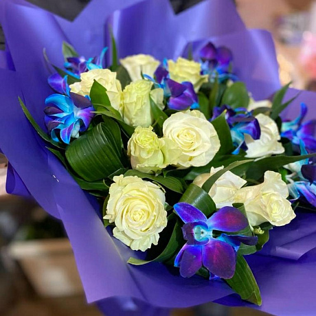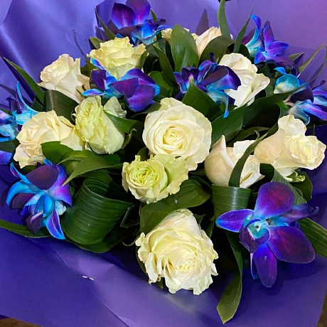 Синий цвет синий упаковке — отличный выбор для подарка! На сайте вы найдете красочные фотографии, которые помогут сделать выбор. Цена букета — 4700 руб.