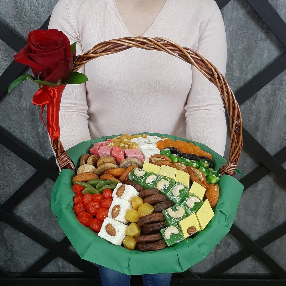 Закажите Сухофрукты и сладости в корзине с доставкой в Москве и МО.
