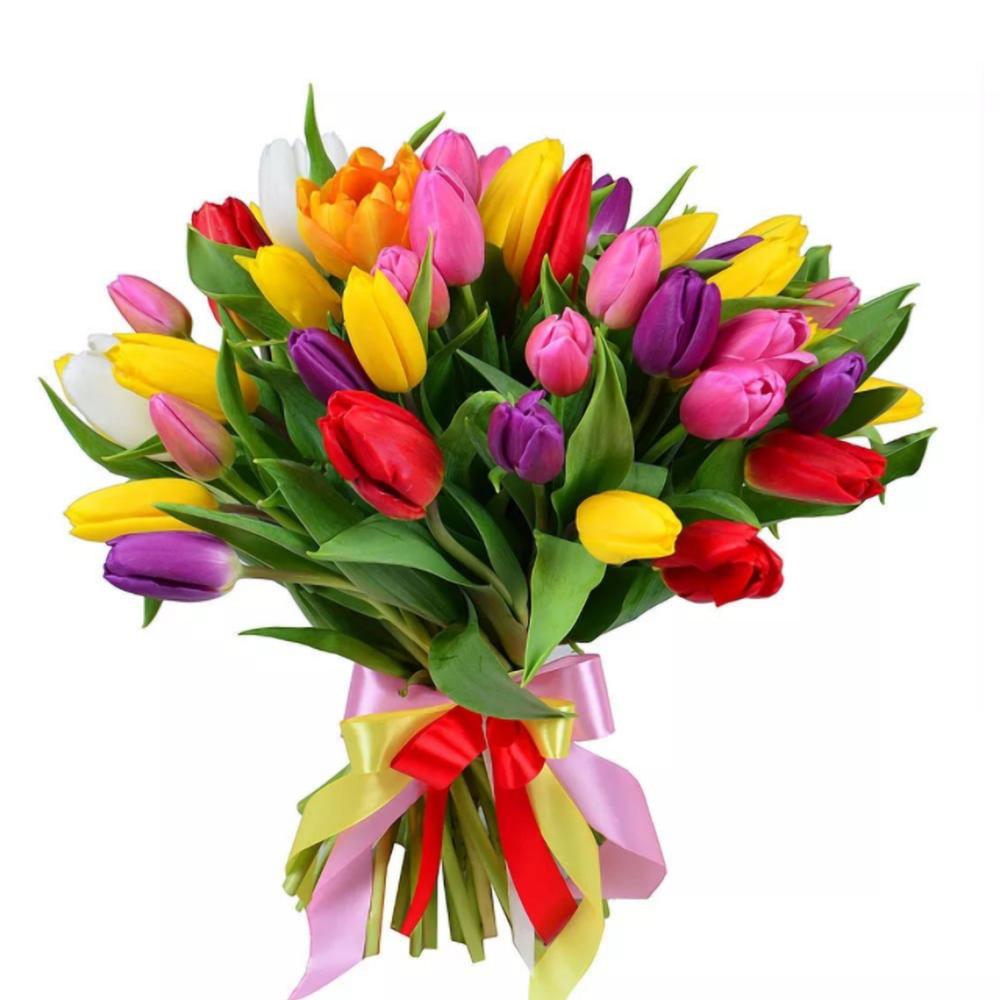 Закажите Букет из 35 разноцветных тюльпанов №2 с доставкой в Москве и МО.
