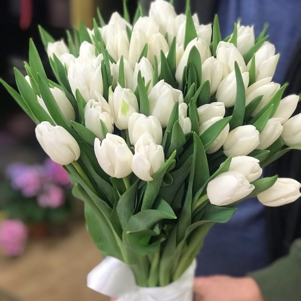 Закажите 50 белоснежных Тюльпанов №2 с доставкой в Москве и МО.