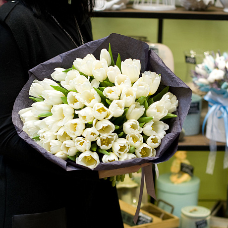 Букет из тюльпанов "Wight" — отличный выбор для подарка! На сайте вы найдете красочные фотографии, которые помогут сделать выбор. Цена букета — 7900 руб.