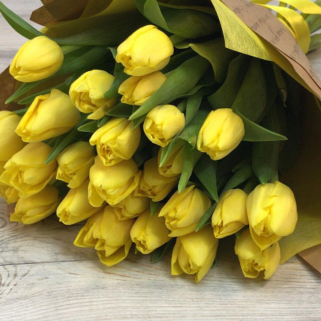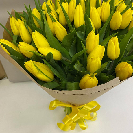 Букет из желтых тюльпанов №162 — отличный выбор для подарка! На сайте вы найдете красочные фотографии, которые помогут сделать выбор. Цена букета — 8000 руб.