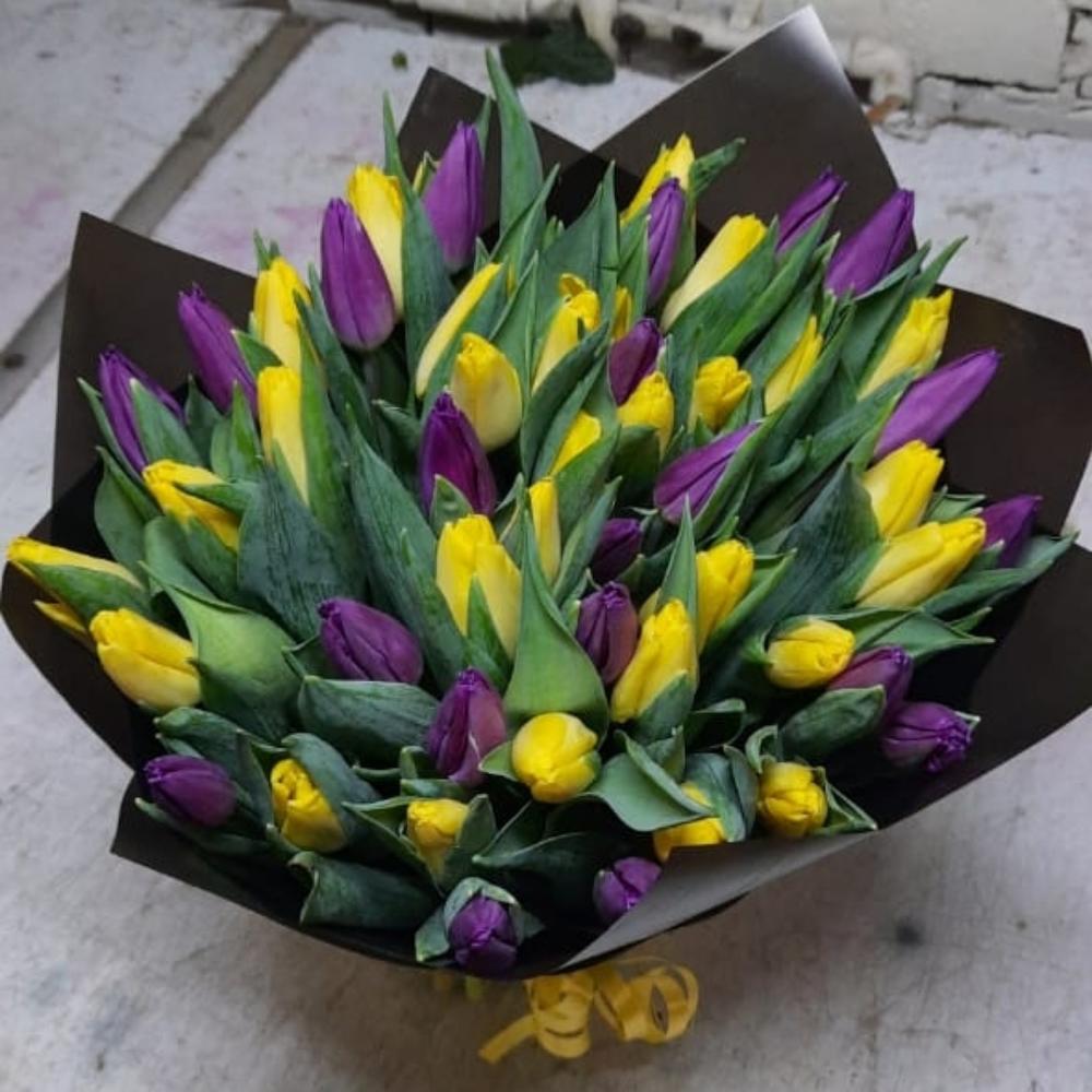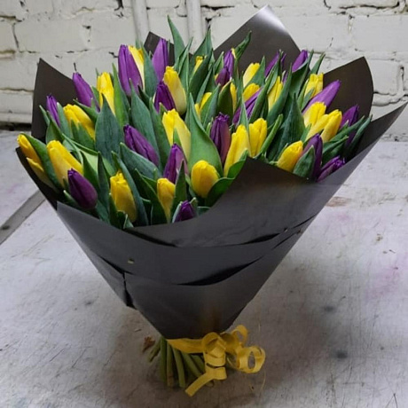 Закажите Микс из тюльпанов в матовой упаковке с доставкой в Москве и МО.