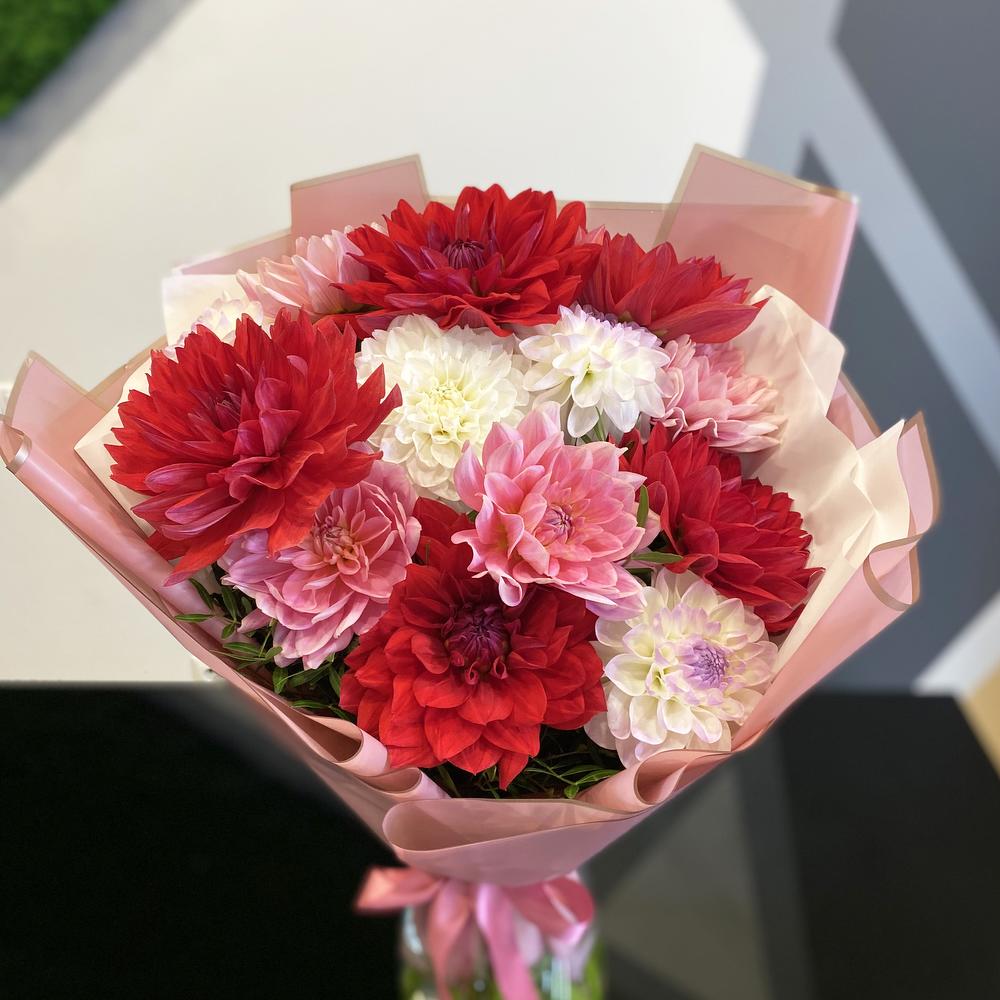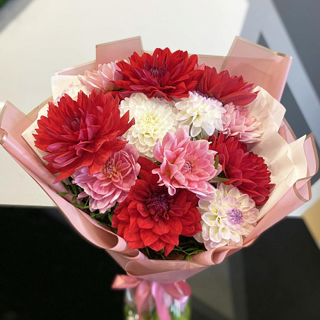 Микс из георгинов — отличный выбор для подарка! На сайте вы найдете красочные фотографии, которые помогут сделать выбор. Цена букета — 5500 руб.