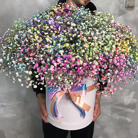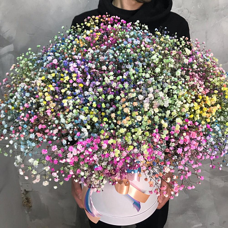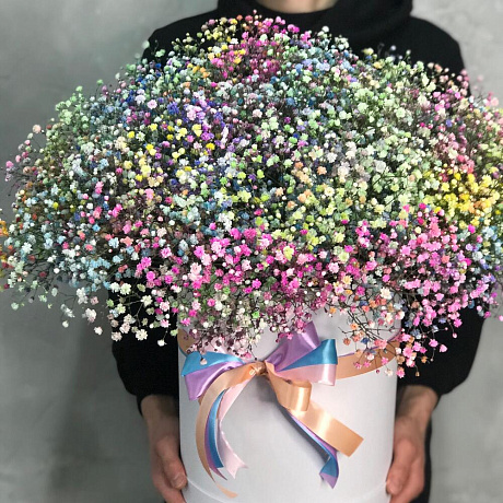 Закажите Радужный гифсофила в шляпные каробке с доставкой в Москве и МО.