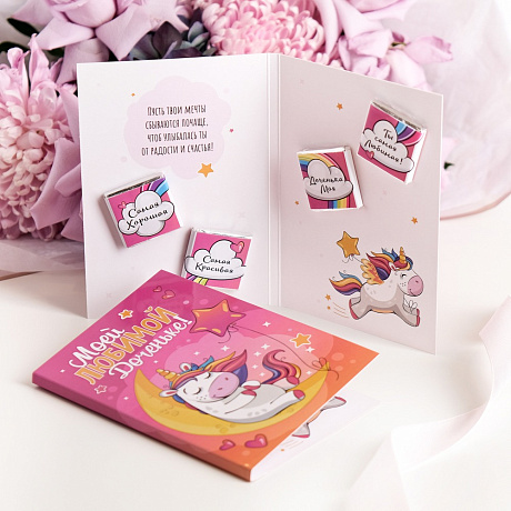 На фото - Открытка с шоколадом "Моей любимой доченьке!".