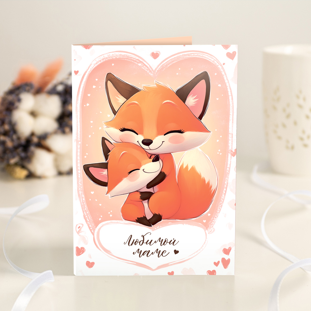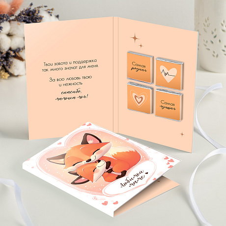 Открытка с шоколадом "Любимой маме" (лиса)