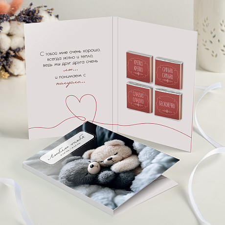 Открытка с шоколадом "Люблю тебя очень-очень"