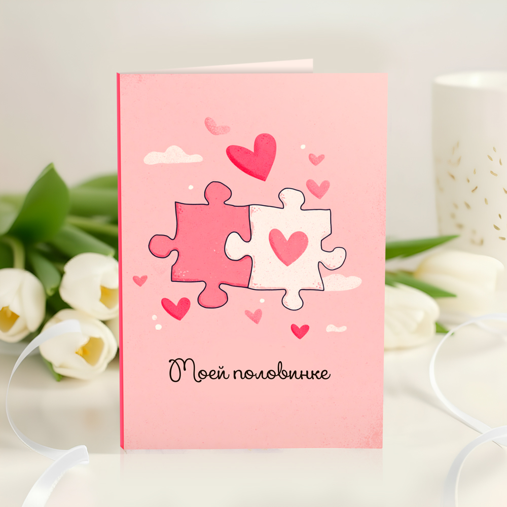 <p>На фото - Открытка с шоколадом "Моей половинке".</p> <p>На сайте "Доступная доставка цветов" Вы найдете большой выбор недорогих букетов, цветочных композиций и подарков для любого повода.</p> <p>Букеты и подарки можно заказать с доставкой по Москве: по городу, до дома или в офис.</p>
