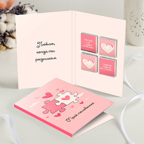 На фото - Открытка с шоколадом "Моей половинке".