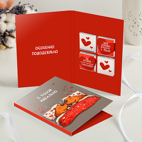<p>На фото - Открытка с шоколадом "С тобой идеально".</p> <p>На сайте "Доступная доставка цветов" Вы найдете большой выбор недорогих букетов, цветочных композиций и подарков для любого повода.</p> <p>Букеты и подарки можно заказать с доставкой по Москве: по городу, до дома или в офис.</p>
