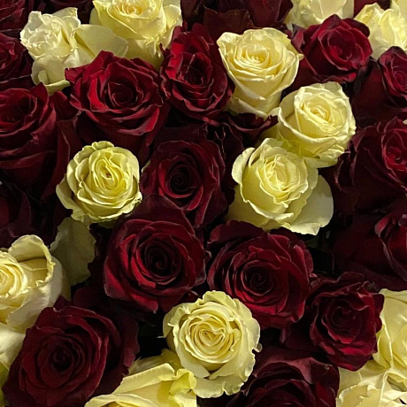 У нас можно заказать 101 красная и белая роза Эквадор с доставкой по Москве.