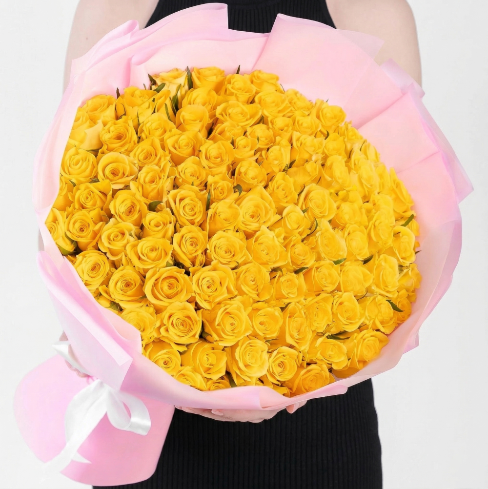 У нас можно заказать Букет 101 желтая роза с доставкой по Москве.