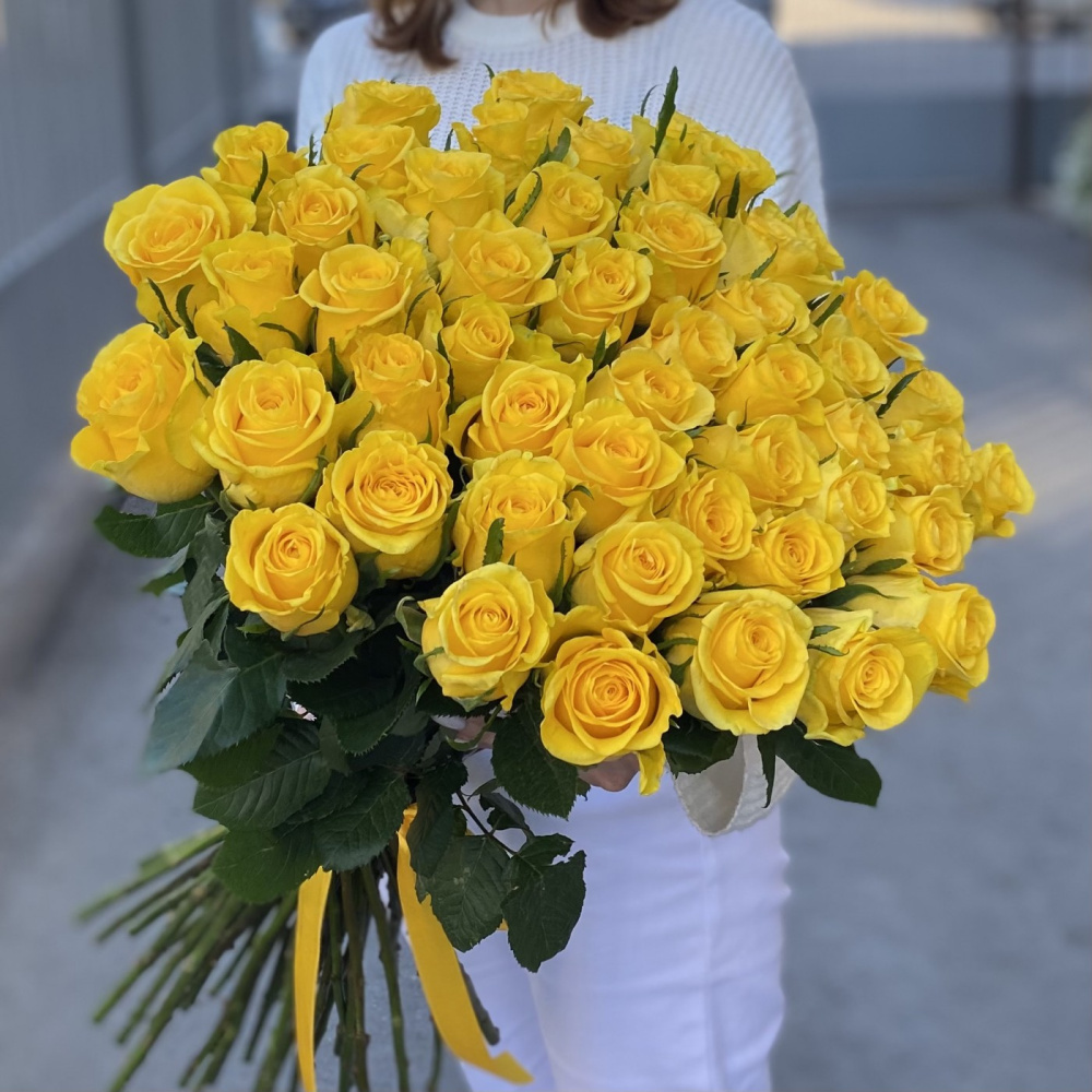 У нас можно заказать Букет 51 желтая роза 40 см. с доставкой по Москве.