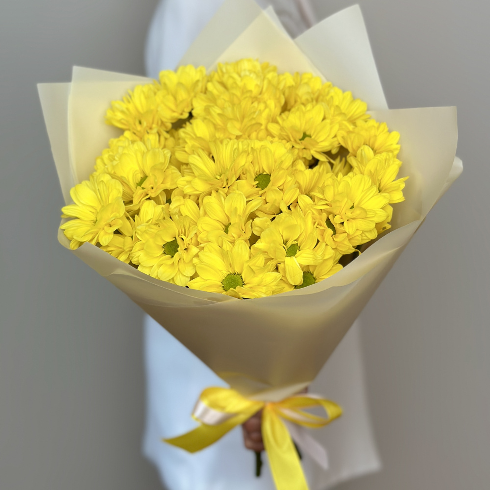 На фото - Букет Сладкая глазурь. В составе данной композиции: Хризантема кустовая 5.