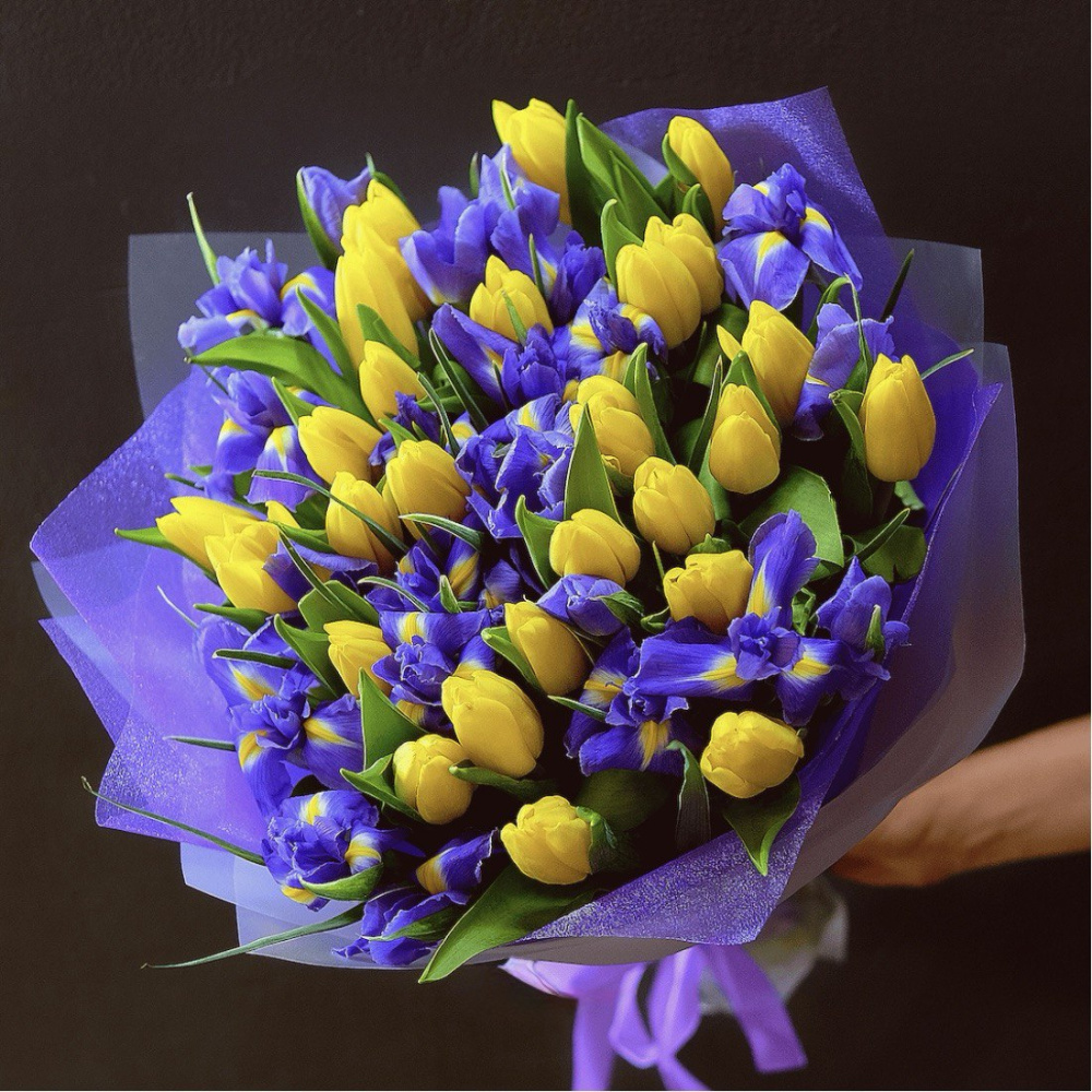Букет ирисы и желтые тюльпаны «Ансамбль» №43