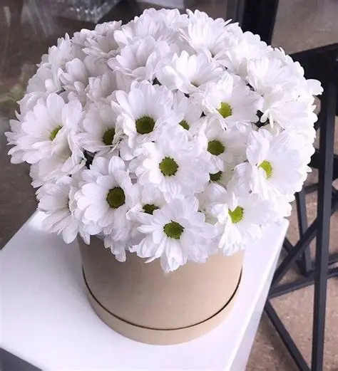 У нас можно заказать 5 Белых хризантем в маленькой белой коробке №327 с доставкой по Москве.
