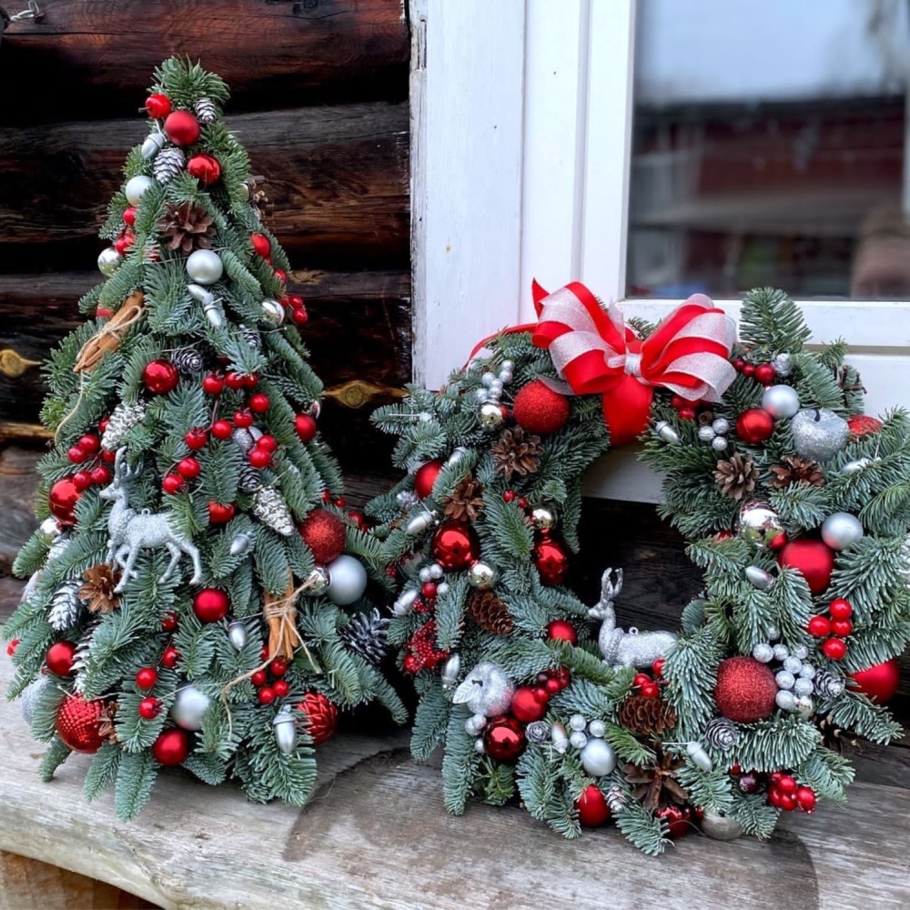 Состав: лапник, шарик из ротанга, новогодний декор (входят оба товара)