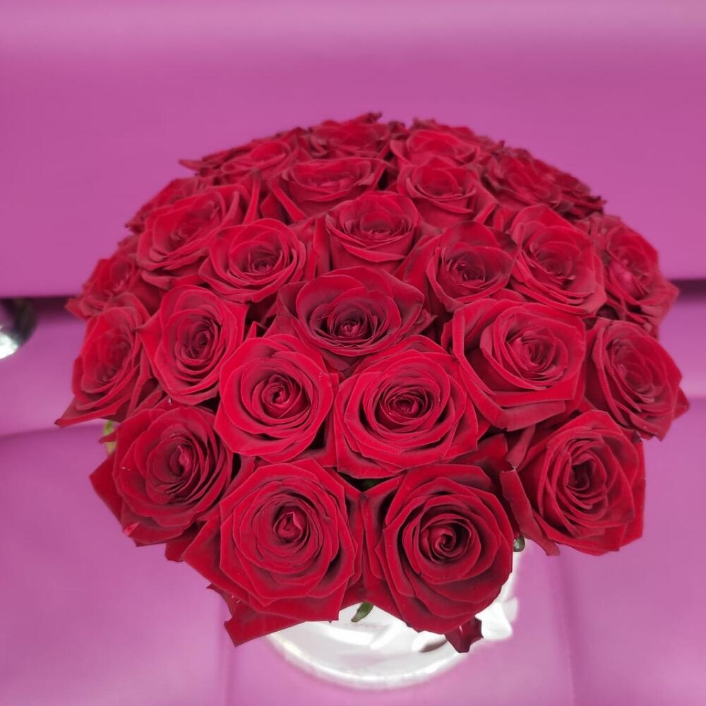 У нас можно заказать 29 красных роз в коробке №161 с доставкой по Москве.