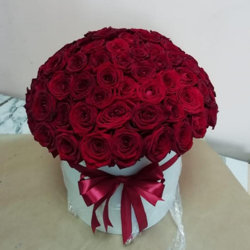 У нас можно заказать 41 красная роза в каробке с доставкой по Москве.