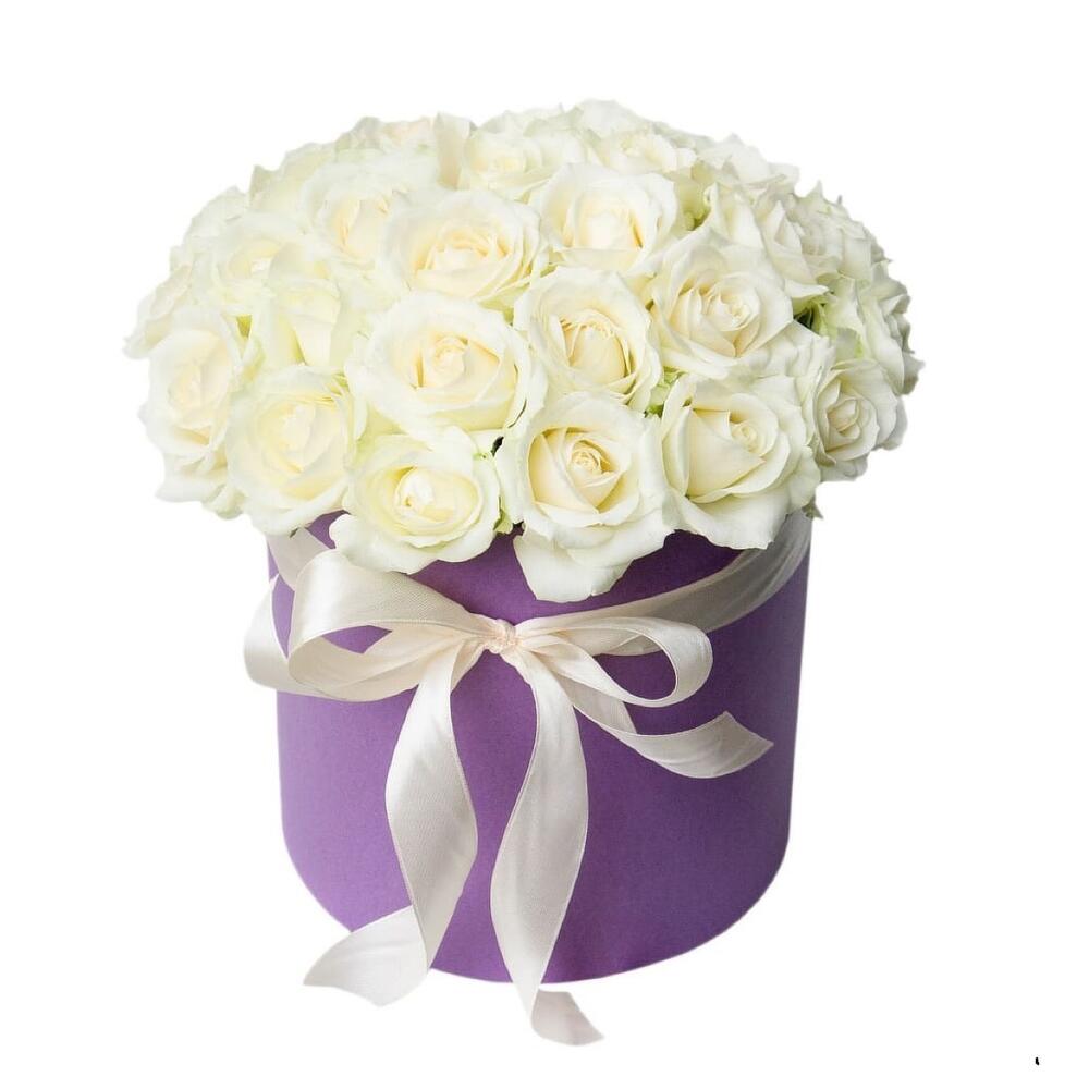 У нас можно заказать Белые Розы в шляпной Коробке №162 с доставкой по Москве.
