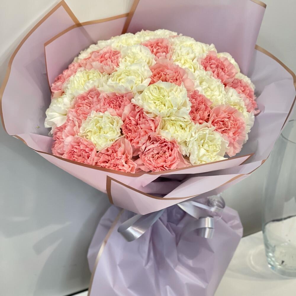 На фото - Букет №231. В составе данной композиции: Гвоздика лунная - 29 шт.; Упаковка дизайнерская - 1 шт..