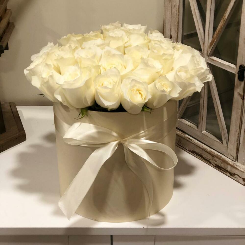 На фото - Букет цветов "Чистая любовь". В составе данной композиции: Роза - 31 шт.; Коробка - 1 шт.; Лента атласная - 1 шт..