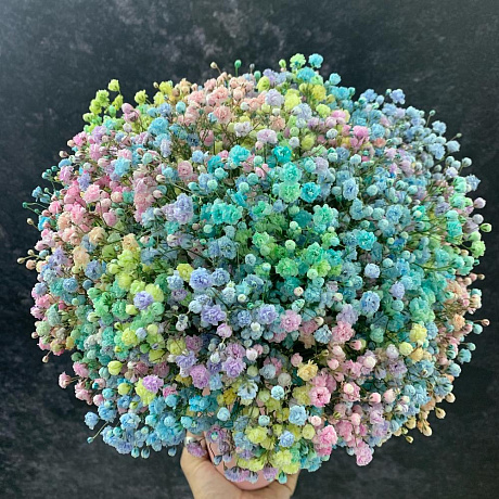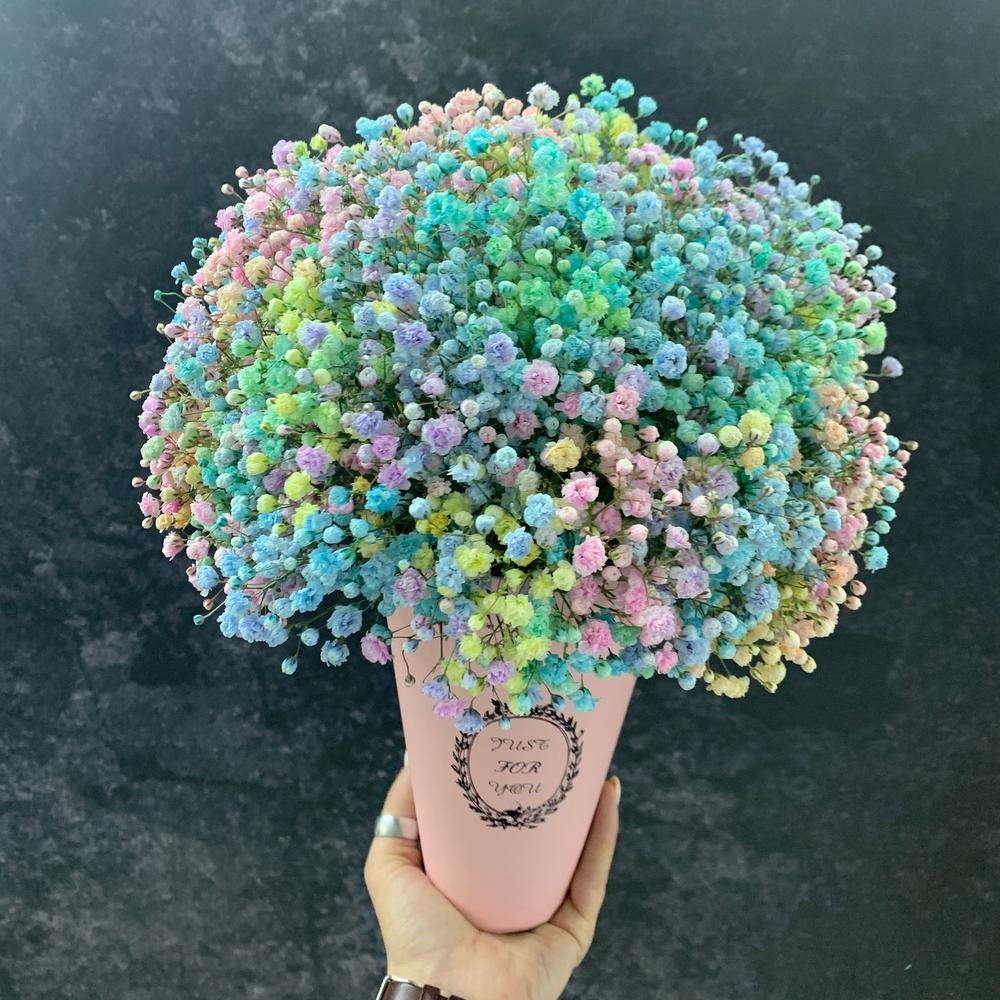 На фото - Букет цветов "Just for you". В составе данной композиции: гипсофила радужная голландская - 7 шт.; Кашпо конус - 1 шт..