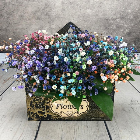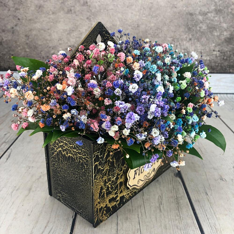 <p>На фото - Букет цветов "Конверт Воздушный". В составе данной композиции: гипсофила цветная микс - 5 шт.; Рускус сочи - 5 шт.; конверт кракелюр - 1 шт..</p> <p>На сайте "Доступная доставка цветов" Вы найдете большой выбор недорогих букетов, цветочных композиций для любого повода.</p> <p>У нас можно заказать Букет цветов "Конверт Воздушный" с доставкой по Москве.</p>