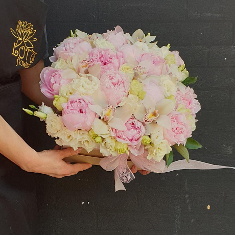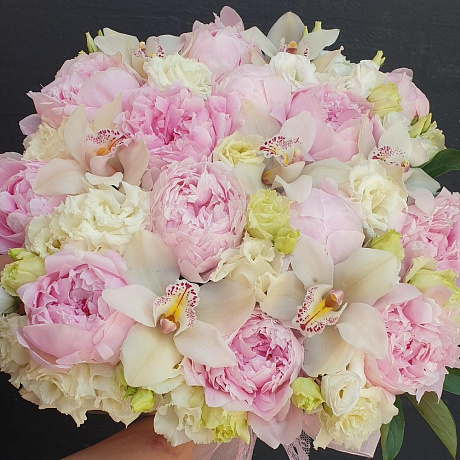 <p>На фото - Букет цветов "Милена". В составе данной композиции: пионы сара бернар - 15 шт.; Эустома - 10 шт.; Орхидея Цимбидиум - 5 шт.; Коробка квадратная - 1 шт.; Оазис флористический - 2 шт.; Упаковка транспортировочная пленка - 1 шт..</p> <p>На сайте "Доступная доставка цветов" Вы найдете большой выбор недорогих букетов, цветочных композиций для любого повода.</p> <p>У нас можно заказать Букет цветов "Милена" с доставкой по Москве.</p>