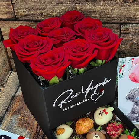<p>На фото - Букет цветов "Шкатулка Грация". В составе данной композиции: Клубника в шоколаде callebaut (бельгия) - 9 шт.; Роза красная 60 см - 9 шт.; Шкатулка - 1 шт.; Оазис флористический - 1 шт.; Лента атласная - 5 шт.; Пленка прозрачная - 1 шт.; Пакет крафт - 1 шт..</p> <p>На сайте "Доступная доставка цветов" Вы найдете большой выбор недорогих букетов, цветочных композиций для любого повода.</p> <p>У нас можно заказать Букет цветов "Шкатулка Грация" с доставкой по Москве.</p>